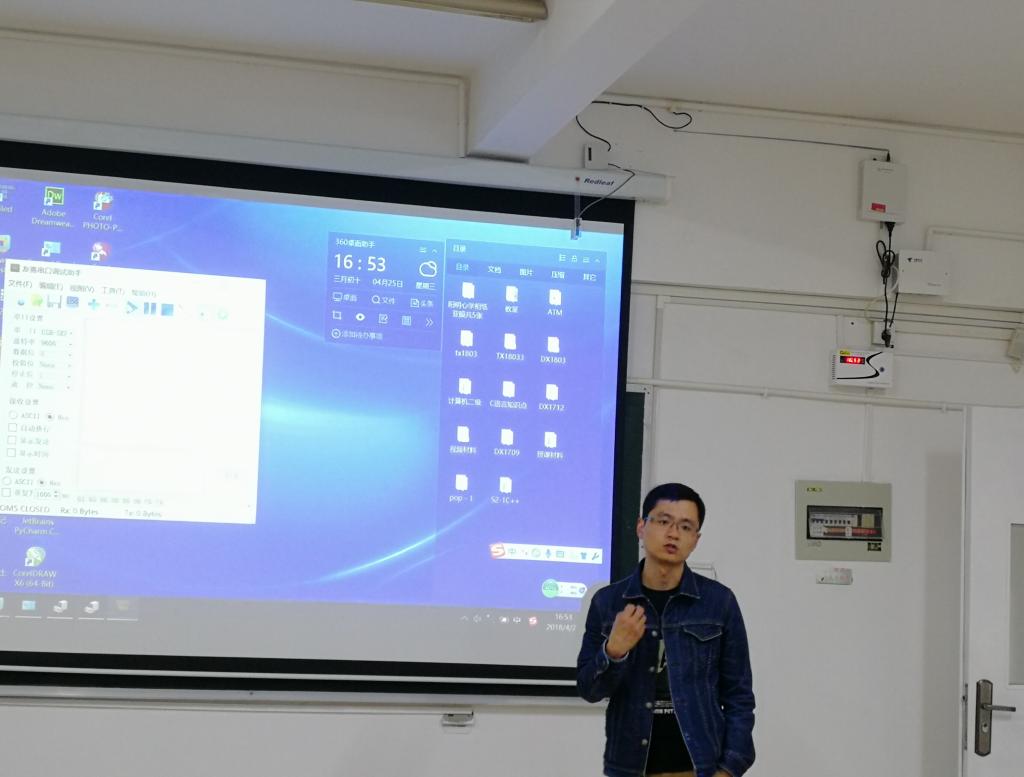 首先,传一科技项目经理王朝峰先生向大家简要介绍了课程内容梗概,他指出,本学期俱乐部的目标将主要培养会员的兴趣爱好,掌握学习方法与方向,快速掌握计算机编程的基础知识,以及了解企业级项目开发的流程规范。软件方面以c语言为主,分为基础课程和强化课程;其次,他提出2048、贪吃蛇、扫雷等项目,希望同学们挑选并实践;同时,他向我们展示了俱乐部优秀学员完成的雷霆战机项目,深受同学们的喜爱。此外,关于硬件方面,老师向大家展示了“如何用串口通信方式来控制灯的亮灭”。最后,老师鼓励大家多做项目,从而锻炼实践能力,做到课本内容学以致用。