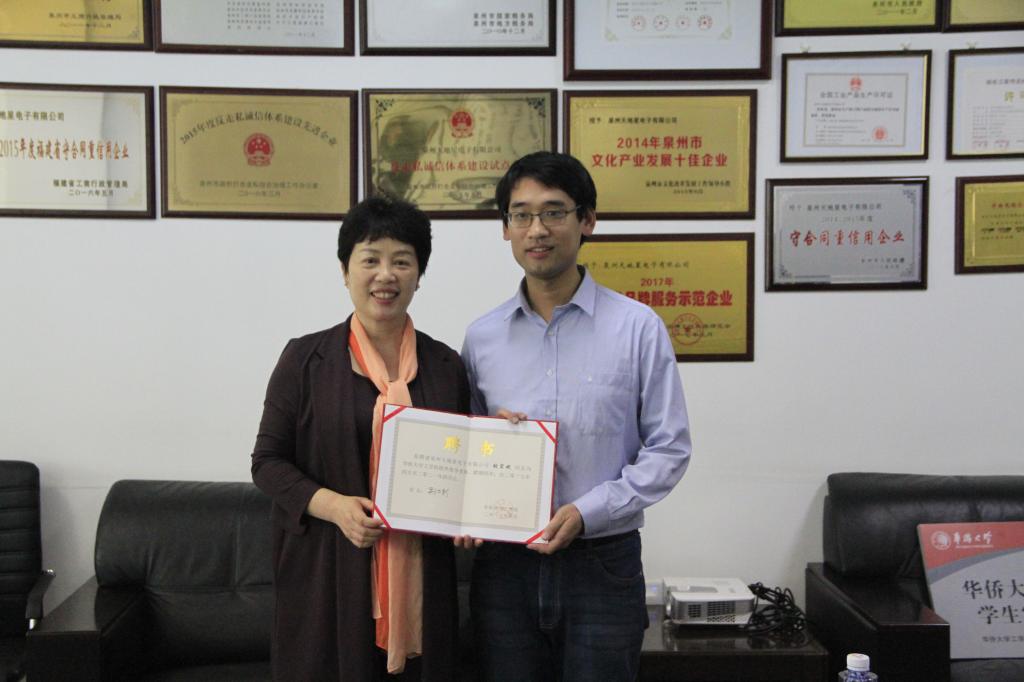 2017年4月25日下午,365bet网址党政领导、各系负责人及学生工作办公室负责人前往泉州天地星有限公司考察学习,校企双方签订《华侨大学365bet网址学生实践基地共建协议》。校领导彭霈副校长为基地授牌,校友处处长项士敏出席授牌仪式,我校校董、泉州校友会会长、泉州天地星电子有限公司董事长兼总经理魏腾雄携华侨大学校友会副会长李健接待校方一行。