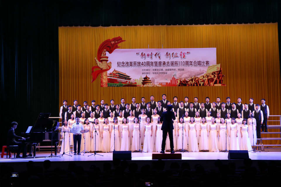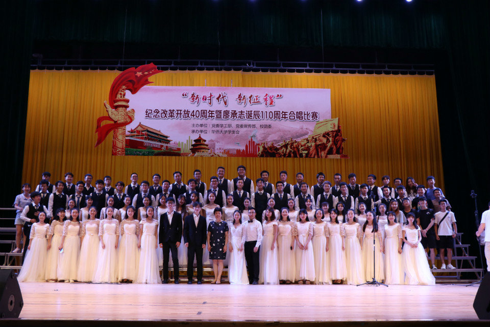 5月19日晚,由党委学工部、党委宣传部和校团委主办,华侨大学学生会承办的纪念改革开放40周年暨廖承志诞辰110周年“新时代 新征程”合唱比赛在陈嘉庚纪念堂隆重举行。本次比赛共有13个学院参赛,每个学院各表演两首参赛曲目。当晚,365bet网址合唱团全体成员以饱满的热情、动人的歌喉赢得了现场评委和观众的掌声与肯定,夺得本次比赛的第一名。