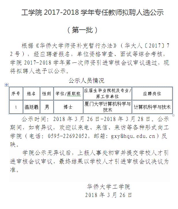 365bet网址2017-2018学年专任教师拟聘人选公示(第一批)