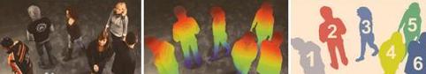 | 三维场景 TOF相机获得的三维轮廓 不同颜色表示不同深度 |