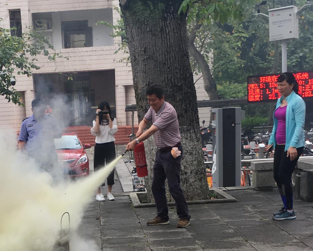 演练由副院长王佳斌主持,院党委书记郑黎鸰强调消防安全的重要性并进行消防应急演练动员讲话,校保卫处成丽娟老师详细讲解了灭火器的用法,基本火灾分类以及不同成分灭火器的应用区别。