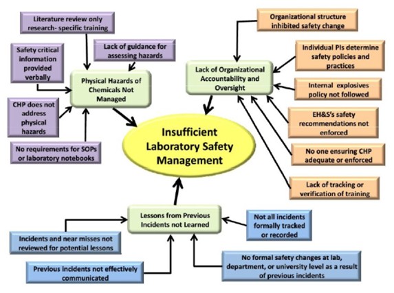 仅从实验室安全管理角度,CSB指出有三方面不足,分别是一、只管理了员工健康危害,对化学品的物理危险管理不足;二、没有对之前发生的未遂事件进行很好的教训总结;三、组织缺乏安全责任和有效监管。【阅读全文】