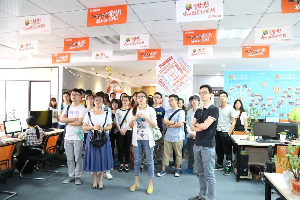 园区管委会热情接待了实践团一行,并派出专人引导实践团先后走访了六合儿童创意、优智造、讯腾科技和皇品文化等企业,听取企业负责人介绍产品研发、设计创业和文化传播等经典案例,深入了解互联网+视角下大学生创新创意产业的发展方向。通过考察,广大同学更直观地感受到从理论知识到实际应用的转化流程,增加课堂学习的目的性。