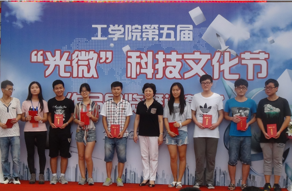 2015年6月23日下午,华侨大学365bet网址第五届“光微”科技文化节作品展览暨闭幕式在365bet网址门口举行。365bet网址院长郑力新、党委书记郑黎鸰、信息工程系系主任张育钊、物联网系系主任王佳斌、团委辅导员兰萌等老师出席了本次活动。
