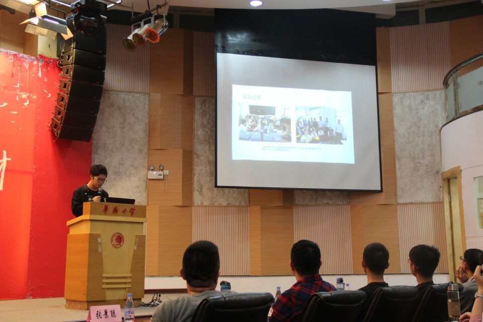 本次宣讲会由17信息班汤立春主持。首先,上一届优秀团队“关爱留守儿童暑期夏令营志愿服务实践团”为大家展示了他们的实践成果,他们深入基层,将所学致用于社会,他们的经验为在座的同学们提供了一个参考。